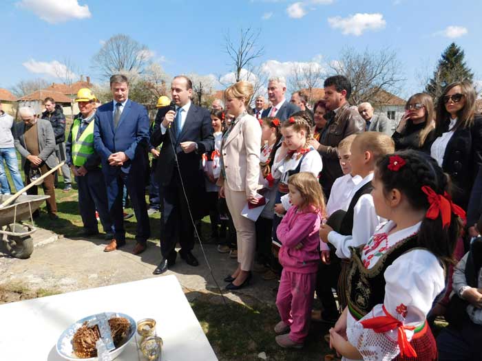 Министар Кнежевић је, полажући камен темељац, указао на чињеницу да се број становника у селима наше земље непрестано смањује. Баш због тога је, између осталог, по његовом мишљењу важно подизање једног оваквог објекта баш на овом месту. То ће бити један од подстрека за останак становништва у овом познатом воћарском крају. Пројекат изградње спортске хале финансиран је, како је нагласио министар Кнежевић, заједничким средствима Министарства привреде и локалне самоуправе 2016. године. Он је истакао да је држава препознала потребу за даљим улагањем и на тај начин најавио и даља улагања и у 2017. години како би спортска дворана била у потпуности завршена.